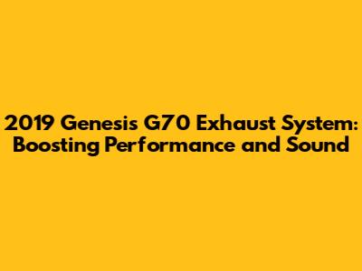 2019 Genesis G70 Exhaust System: Upgrades & Performance