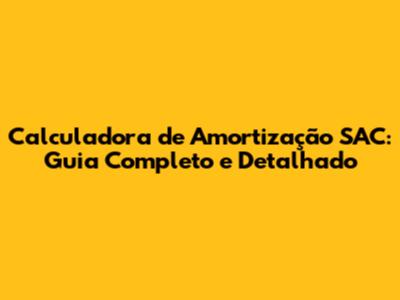 Calculadora De Amortização SAC: Guia Completo E Detalhado