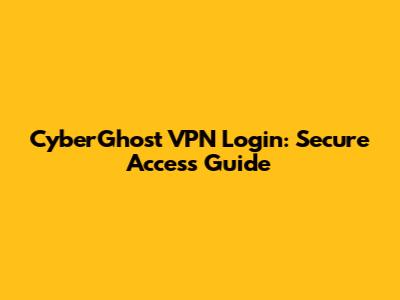 CyberGhost VPN Login: Secure Access Guide