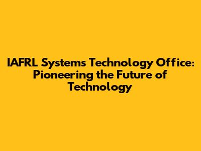 IAFRL Systems Technology Office: Innovation & Future Tech
