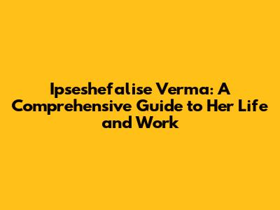 Ipseshefalise Verma: Biography, Career, And Life