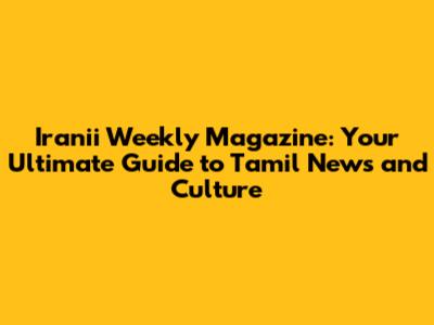 Hey there, fellow Tamil enthusiasts! Ever find yourself craving a weekly dose of all things Tamil, from news and current events to vibrant cultural insights? Well, you're in luck! This article dives deep into the world of Iranii Weekly Magazine, a fantastic resource that keeps you updated and engaged with everything happening in the Tamil-speaking world. We'll explore what makes this magazine tick, the kind of content you can expect, and why it's a must-read for anyone with a passion for Tamil culture and language. So, grab a cup of your favorite beverage, settle in, and let's explore the exciting world of Iranii Weekly Magazine! This in-depth guide is designed to give you a comprehensive understanding, covering everything from its historical context to its modern-day impact. We will be exploring the unique features, the target audience, and the overall influence this magazine holds in the hearts of Tamil readers around the globe. Get ready for an engaging journey that promises to enrich your understanding of this vital publication.