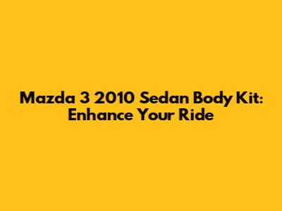 Hey guys! Are you looking to spice up your 2010 Mazda 3 sedan? A body kit might be just what you need. Let's dive into the world of body kits and see how they can transform your ride from ordinary to extraordinary. In this article, we’ll cover everything you need to know about choosing the right body kit for your Mazda 3, the different types available, installation tips, and where to find the best deals.