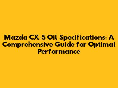Mazda CX-5 Oil Specifications: What You Need to Know