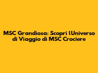 Ciao a tutti, appassionati di crociere! Oggi, immergiamoci nel mondo scintillante di MSC Crociere e, in particolare, esploriamo la magnificenza della MSC Grandiosa. Se vi state chiedendo dove si trova MSC Grandiosa e cosa rende questa nave così speciale, siete nel posto giusto. Preparatevi a scoprire itinerari da sogno, destinazioni mozzafiato e consigli utili per rendere la vostra esperienza indimenticabile. Ma prima di iniziare l'avventura, ricordate che MSC Grandiosa non è solo una nave; è un'esperienza, un universo di intrattenimento, relax e scoperta che vi aspetta.