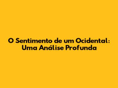 O Sentimento De Um Ocidental: Uma Análise Profunda