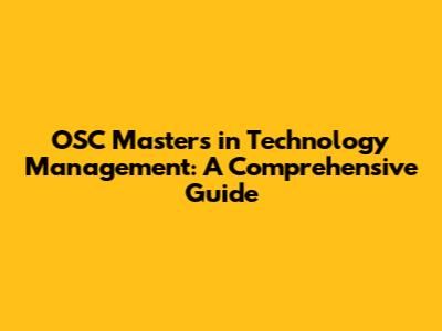 OSC Masters In Technology Management: A Comprehensive Guide