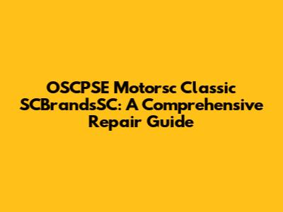 OSCPSE Motorsc Classic SCBrandsSC: Troubleshooting & Repair