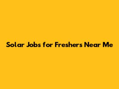 Solar Jobs For Freshers: Find Openings Near You