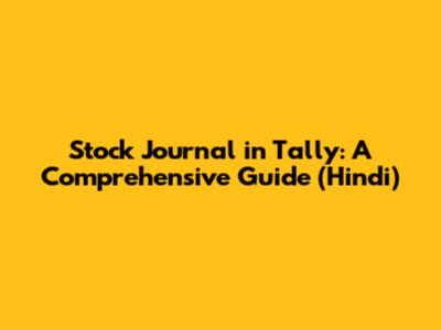 Stock Journal In Tally: A Comprehensive Guide (Hindi)