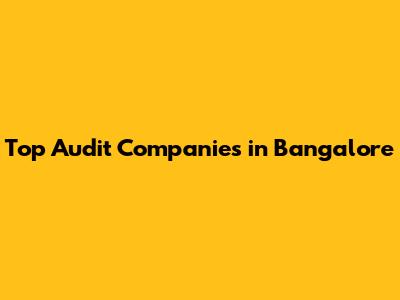 Top Audit Companies in Bangalore