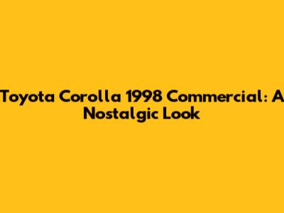 Toyota Corolla 1998 Commercial: A Nostalgic Look
