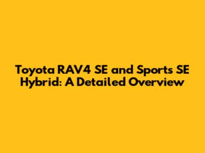Toyota RAV4 SE And Sports SE Hybrid: A Detailed Overview