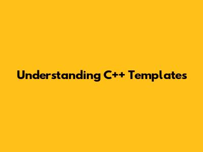 Understanding C++ Templates